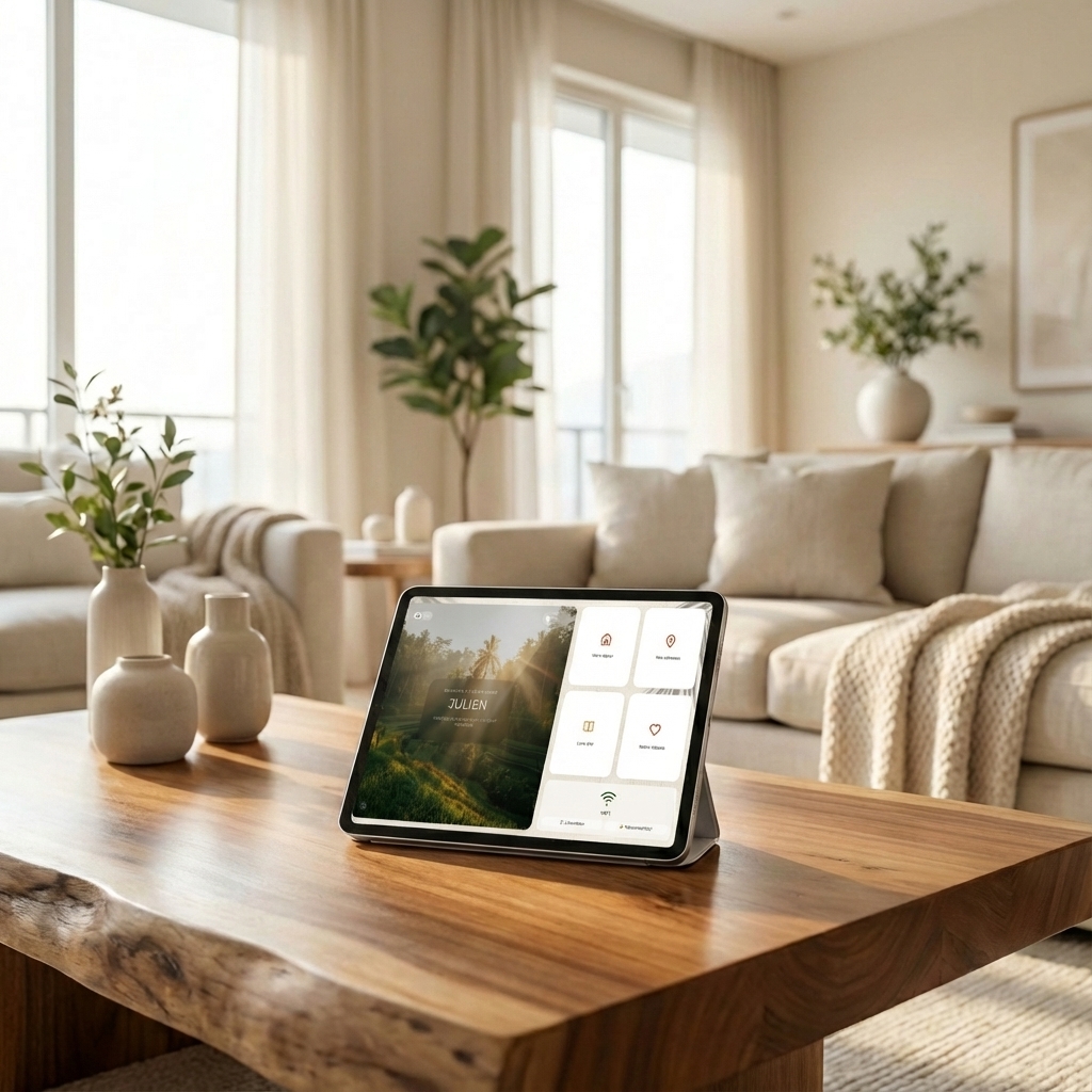 J'ai passé des mois à créer un lieu où chaque détail compte. La lumière, les textures, les senteurs. Alors quand mes voyageurs arrivaient et tombaient sur un classeur plastifié posé sur la table… ça cassait tout.